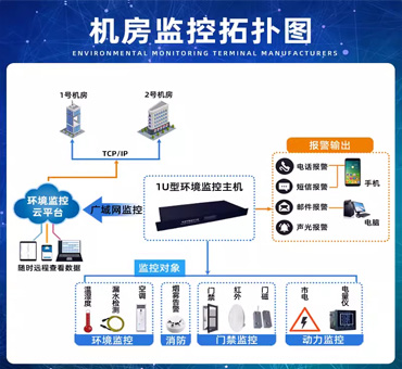 1路RS485接口可接入我司所有的RS485型的变送器(温度、湿度、水浸、断电、烟感、红外、噪声、空气质量),并将数据实时上传至我司提供的环境监控云平台。