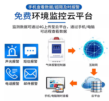 气体报警控制器通过RS485接口可将我司气体变送器接入到气体报警控制器,并将数据实时上传至我司提供的云平台。