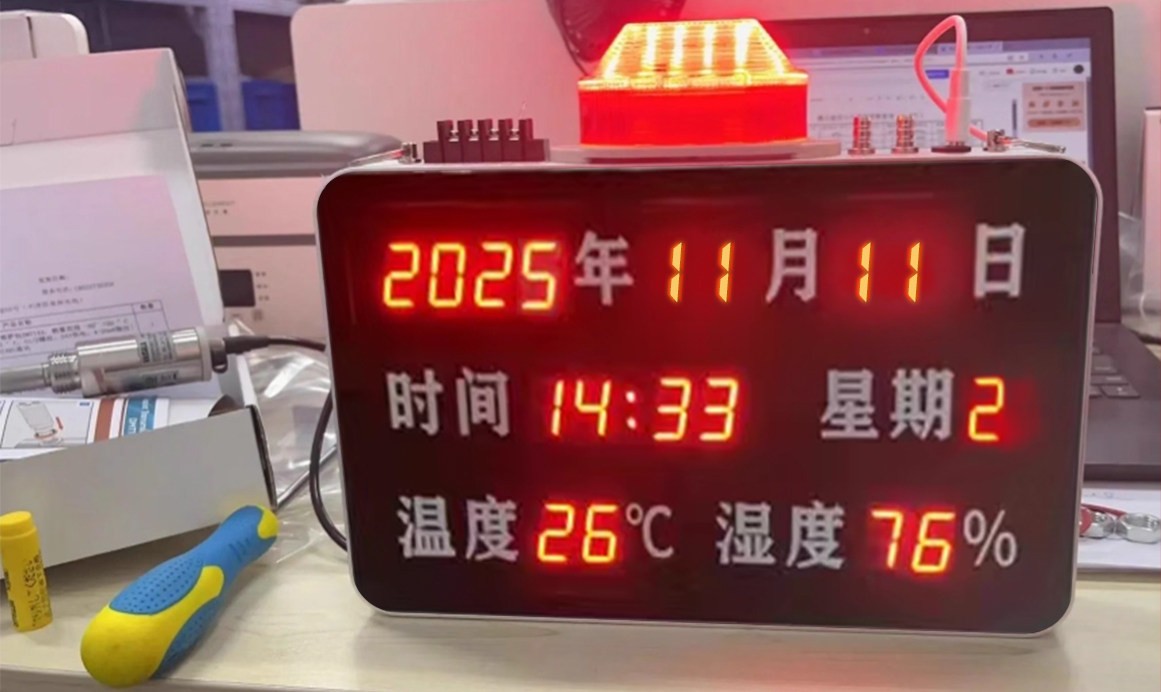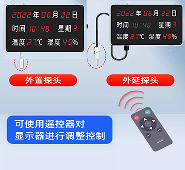 ▇采用大尺寸面板,红光高亮数码管,白天黑夜乃至强光下都可清晰显示。万年历款可视距离>15m ,温湿度款可视距离>35m。