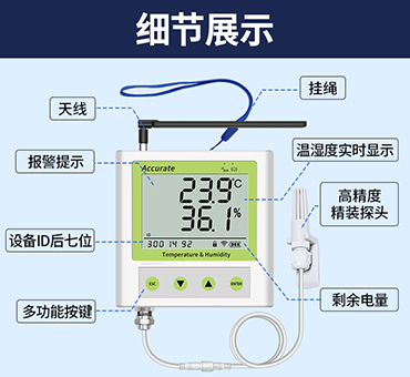 · 设备采用大屏液晶显示,具有温湿度上下限双重控制,自由设置限制,可以实现高低温度报警与高低湿度报警并实时显示。