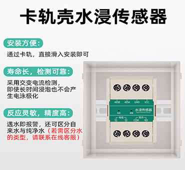 采用交变电流采集积水的电感参数,准确区分是否发生水浸,甚至可以区分纯净水与自来水(默认以自来水为检测对象,若要检测纯净水请特殊说明)。