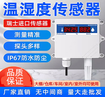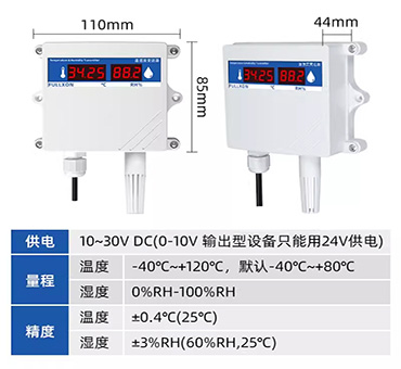 该传感器带有数码管显示功能,可实时显示当前温湿度,采用壁挂防水壳,多用于室外及现场环境恶劣的场合。