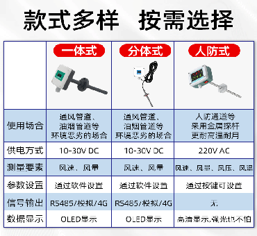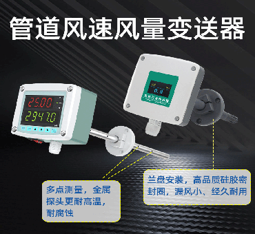 专用于管道内风速的测量,采用高精度风速测量单元,启动风速小,反应灵敏,可适用于通风管道、油烟管道等环境恶劣的场合。