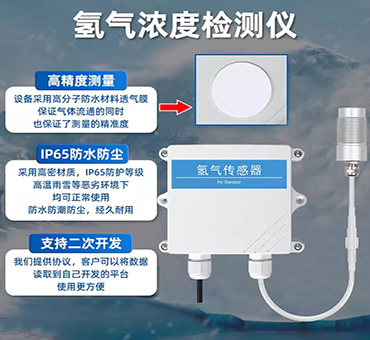 采用专业氢气浓度传感器作为核心检测器件,具有测量范围宽、精度高、线性度好、通用性好、使用方便、便于安装、传输距离远、价格适中等特点。
