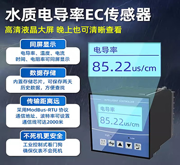 高智能化:采用高精度 AD 转换和单片机微处理技术,能完成电导率值和电阻率值、温度测量、温度自动补偿等多种功能。