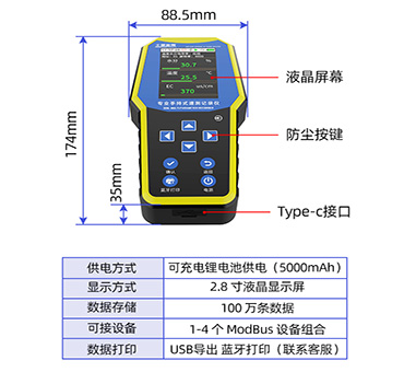 电池供电(5000mAh锂电池,Micro-B 口供电为5VDC)