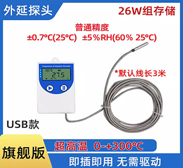 内置存储功能,可记录26万条温度数据,最多可扩展208万条数据,支持USB线导出数据,通过我司配套的软件可以非常方便的导出。