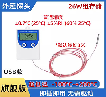 USB超高低温单温度记录仪,主要用于记录食品、医药品、化学用品等产品在存储和运输过程中的温湿度数据记录,还可应用于冷藏集装箱、冷藏车、冷藏包、冷库、实验室等。