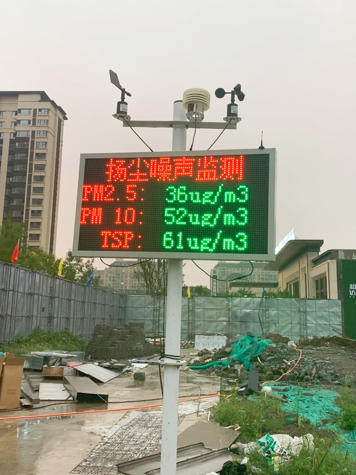 噪声扬尘监测站由参数检测终端百叶箱、 防水 LED 看板、立杆支架三部分组成,是集颗粒物PM、多气象要素于一体的新型在线监测终端。