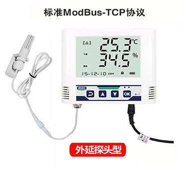 它将采集的温湿度数据通过ModBus-TCP方式,即已架设好的以太网通讯网络,远距离传输到服务器,实现温湿度数据的集中监控。