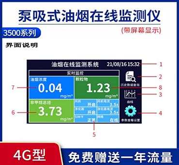泵吸式油烟在线监测仪SN-3500-LB能够对餐厨排烟管道的油烟浓度、颗粒物浓度、非甲烷总烃(NMHC)浓度进行24小时不间断测量,并上传我司免费的监控平台或政府监控平台。